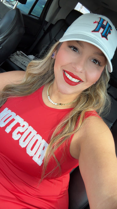 Material: Stretchy, soft fabric for all-day comfort Design: Sleeveless mini with waist tie & sequin “H” accentFit: Flattering, relaxed yet fitt...